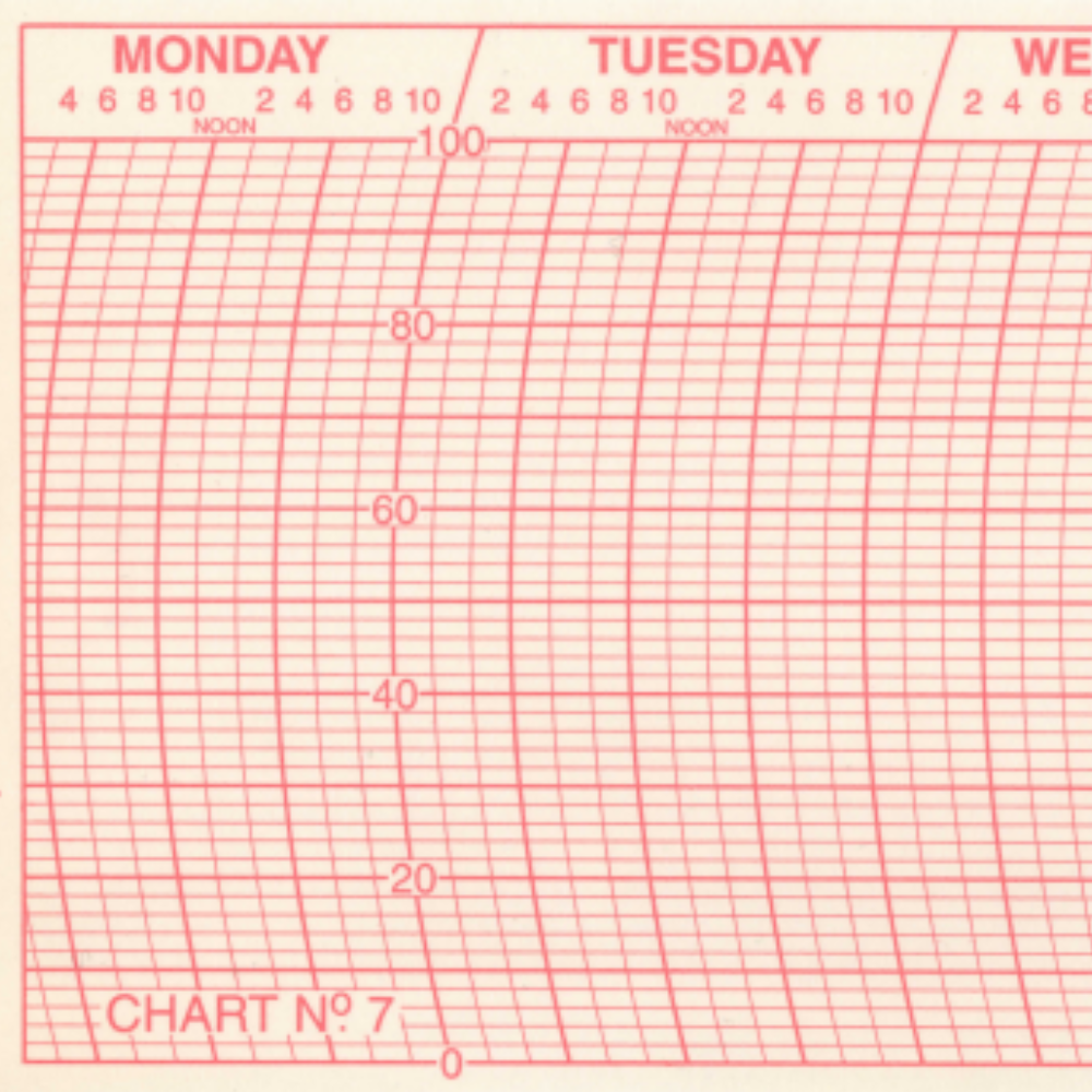 Traditional non-adhesive hygrograph charts ideal for recording drums that have a clip to hold the chart in place. If your drum recorder does not have a clip we suggest using our chart tape to hold the sheets in place.